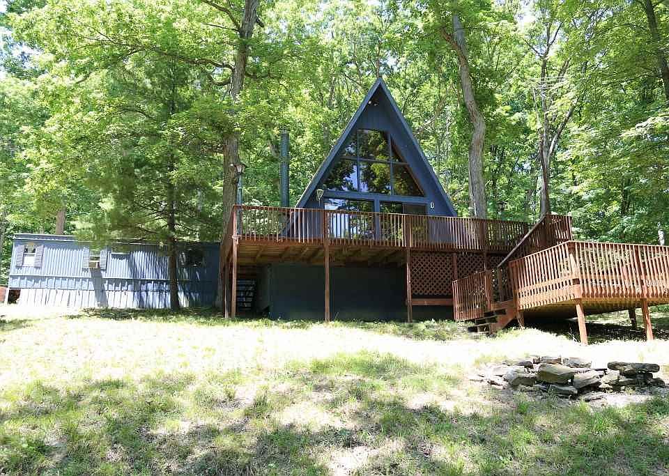 On Lake Monroe, 3 bed, 1 bath home on 4.6 acres, motivated seller offering this property for your next vacation retreat or dream home. Nestled between Hoosier National Forest, Yellowwood Forest, Brown County State Park and North Fork Wildlife Refuge, with an excellent location halfway between bustling Bloomington and quaint Nashville, this unique 1536 fsqft A-frame cabin with 3 bedrooms, 1 bathroom, recently rewired electrical, newly graveled driveway and parking area, rests high on 4.6 acres of a rolling Brown County hill with waterfront views and access to Lake Monroe. Or build your own home - as this property has state soil septic approval on file with county for a 3-bedroom new home. Only a 1 hour and 15 minute drive from Indianapolis, enjoy a cozy weekend getaway offering fishing, hunting, canoeing, boating, bald eagle watching from the elevated deck, cook-outs and campfire stories that will create a lifetime of family memories. For the cost of a what would be a down payment on other homes on Lake Monroe, you can fully own this A-frame cabin and its acreage... great opportunity and potential. Home in need of some TLC, Property being sold "as-is." -- Cash purchase required. Seller firm on price