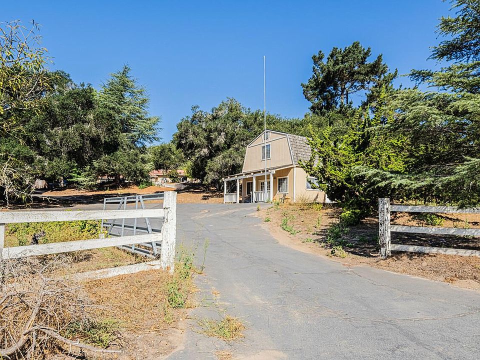 2 Houses with separate addresses and barn on 3 acre lot. 2nd house is at 7412 Valle Pacifico. Plenty of room for animals. Barn is by the road, Main house is set back and Mediterranean style with detached 3 car garage. Living room and family with Kitchen in the middle. Primary is 2 rooms one with laundry hook ups. Other 2 bedrooms and bath on other side of house. 2nd house is barn style with 2 car detached garage. Open floor plan with primary and bath on first floor others upstairs and inside laundry. Lots of extra parking at both houses. New 90ft of new fence and new lids on septic tanks
