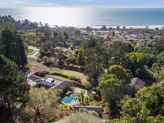 Terrific coastal compound featuring a total of 3450 sqft consisting of 5-bedrooms, 4 bathrooms shared among two houses plus an additional poolside cottage with1-bathroom. Overlooking Stinson Beach, this rare 2 acre homesite is one of only a handful of 2 plus acre parcels near downtown. With sweeping white water views, dramatic panorama of the Pacific Ocean, and harmonious blend of level and rolling terrain, the land offers a stunning canvas for your vision. The property seamlessly borders the 6,300-acre Mount Tamalpais State Park and a path connects you to the renowned Matt Davis Trail - a gateway to some of Marin's most scenic hiking. Stately mature trees, open meadows and established gardens along with the absence of neighbors behind accentuate the natural beauty of the indoor/outdoor living spaces. Enjoy a gentle symphony of the distant waves, year round creek and the calls of many species of shore birds including red tail hawks and blue herons. Sculptural rock formations create intimate moments within the expansive gardens making this serene retreat feel worlds away yet conveniently close to the vibrant coastal community.