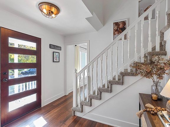 See this charmingly updated 2 story in Edenton. The exterior features wainscot brick accents, new vinyl siding, new windows & is surrounded by mature trees in an established neighborhood creating perfect curb appeal. The 5-lite wood toned front door meets walnut plank flooring that spans the main level. The main floor hosts an open kitchen with rustic shiplap accents, that flow into the living room with a stone hearth fireplace. Just off the kitchen with its subway tile backsplash, crown molding cabinets, kitchen island, & stainless steel appliances- is a main floor laundry room that is adjacent to a half bath, & entrance to the 2 stall garage with bump out for a workshop. On the main, you will also find a large office & formal dining room. On the 2nd floor there are 3 beds- primary bed with ensuite bath & walk in closet. Downstairs is a wet bar, family room, full bath, & non-conforming bedroom. Outback, enjoy the convenience of a fully fenced yard or relax under the covered patio.