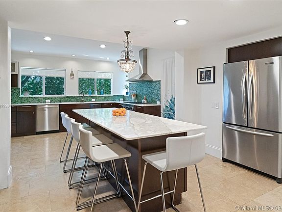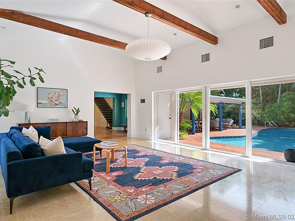 This one-of-a-kind Pinecrest home sits on a private, corner lot and exudes the South Florida lifestyle. Features include: high ceilings & lots of natural light, refinished limestone & hardwood floors and a stunning Gourmet Chef s Kitchen w/ Calacatta marble, gas range & eat-in island. Beautiful family room w/ vaulted ceiling overlooking sparkling pool. Impact windows & doors. Walk out of the master suite to your private pool terrace. Upstairs you will find 3 additional bdrms plus an office/den. 2-car garage. Large covered patio, perfect for entertaining. Lush landscaping & mature mango trees. Enjoy life in your very own Tropical Oasis!