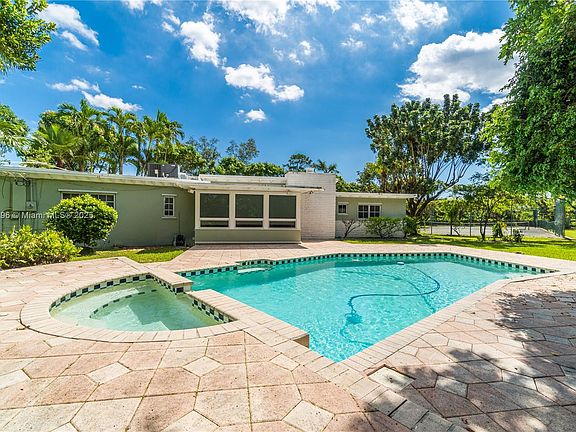 On a serene and private neighborhood block, you'll find this perfect retreat. Upon arriving through the gated entrance, you are transported to a tropical paradise as you are greeted with a tree-lined driveway of mature mango trees. A charming 4/2 home sits on this oversized acre property and boasts an up to date kitchen with all new appliances, newly renovated master and bathroom, beautifully appointed light fixtures and fireplace as the centerpiece of the home. The laundry room located next to the home is also newly renovated with all the laundry necessities. This 43, 560 sq. ft. property includes a full-sized tennis court and pool with jacuzzi. Located in the highly sought-after neighborhood of Glenvar Heights just off of Sunset Drive.