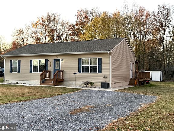This charming 3-bedroom, 2-bath rancher nestled in a serene setting of Quaker Estates is a gem you won't want to miss! This modern 2018 home offers a perfect blend of comfort and style on a back corner lot with scenic trees on two sides. The perfect split bedroom design with large open central living room, kitchen, and dining with generous space perfect for gatherings. Durable vinyl laminate flooring with the exception of the two smaller bedrooms are carpet. The primary bedroom is a peaceful retreat with an en-suite bathroom, offering privacy and convenience. Enjoy time outside on the expansive 16 x 32 deck for outdoor gatherings and relaxation. Two nice storage sheds for your lawnmower and tools, raised garden bed, play area and a separate spot for your camper. This home shows like new and won't last long. This home offers close proximity to all downtown amenities, schools, and parks and is only 25 minutes to Middletown's shopping, dining, and entertainment options. Don't miss the opportunity to make this delightful rancher your own. Schedule a private showing today and envision the possibilities of living in this beautiful home! Private well and public sewer.