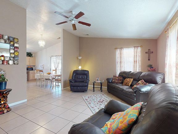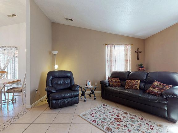 Immaculate house located in desirable, quiet neighborhood. Unique entrance. Open floor plan, vaulted ceiling, eat in kitchen, large bedrooms, LARGE covered patio (28 x 11) to enjoy the beautiful Albuquerque evenings. Beautiful, mature landscaping in front & backyard. Backyard has apricot, apple & plum trees. Come see for yourself!