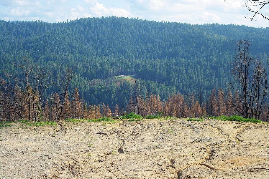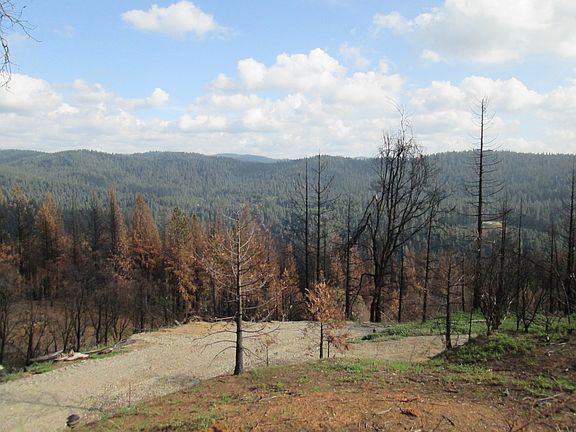 Deep Well 580ft In 2004 7GPM. 1000gal 2 bedrooom septic tank. Property in King Fire Burn zone but view over the Crystal Range survived - close to Crystal Range Recreation area. Demolition complete - building site ready to build. Electric/phone 20ft- from property line. With solar could be off grid. Logging almost complete - reforestation to begin in 2016 grant applied for and transferable. Have builder if needed - Carport