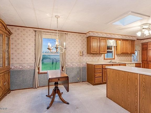 Peace and quiet abound with this secluded home. Beautiful lot with wooded and rolling hill scenery. This well maintained home has a large master suite and two other bedrooms. Two full baths. Large living room with wood burner. Kitchen updated with newer cabinetry and counter tops. Large pantry and main floor laundry area. All appliances included even washer/dryer. All newer replacement windows. Three season porch and decking off back of home with amazing views. Large 30x30 outbuilding and yard shed.