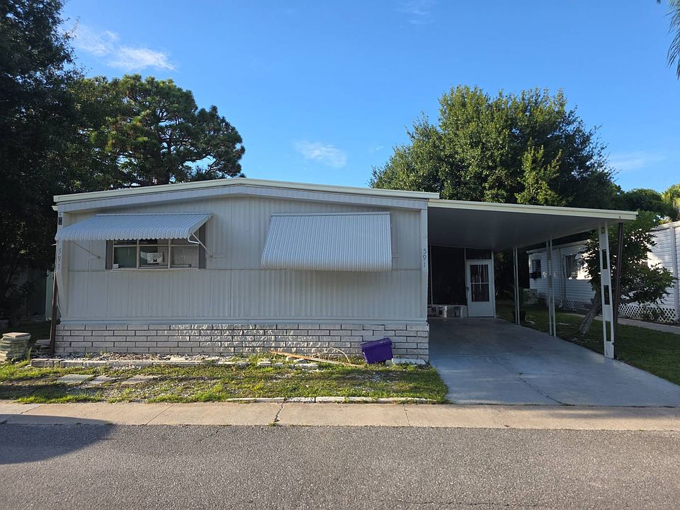 Welcome to WHISPERING PINES Mobile Home Park - Largo's PREMIER ALL-AGE, PET-FRIENDLY community featuring top-notch AMENITIES including a well-maintained BASKETBALL COURT, SHUFFLEBOARD and TENNIS COURTS, a huge HEATED COMMUNITY SWIMMING POOL, and a PICNIC AREA perfect for friends, family, and guests to enjoy for years to come. This UNIQUE and MASSIVE 1,644-square-foot HANDYMAN SPECIAL is truly ONE-OF-A-KIND. Currently decorated in a "TIKI HUT" theme, this home delivers a PERSONALITY and CHARM that MUST BE SEEN to be believed. BAMBOO finishes on the CEILINGS and WALLS, along with a CUSTOM-MADE BAMBOO entry door, highlight the OVERSIZED PANTRY area that can easily serve as an additional BEDROOM if desired. Beneath the bamboo, FINISHED DRYWALL makes it simple to REIMAGINE the space-or continue the DISTINCT TROPICAL THEME that sets this home apart. The property features 3-CAR PARKING, including 2-CAR COVERED CARPORT that flows into a 400-square-foot SCREENED ROOM with STORAGE SHED. With the right VISION and MODIFICATIONS, this space provides the POTENTIAL for ADDITIONAL BEDROOMS or FLEXIBLE LIVING AREAS. Inside, the KITCHEN is partially UPDATED with BRAND-NEW CABINETS (still in wrappers), NEW LAMINATE COUNTER-TOPS, a BARN SINK, and a TIKI-STYLE BAR TABLE that brings the BEACH VIBES home. An INDOOR WASHER & DRYER add to the convenience. The MASTER SUITE spans nearly the full length of the home, enhanced by an OPEN-CONCEPT layout with a tremendous WALK-IN CLOSET and ENSUITE BATHROOM featuring a NEW TOILET and VANITY with a HEART-SHAPED SINK. A SECOND BATHROOM renovation was STARTED but paused due to a FAMILY EMERGENCY, creating an opportunity for the next owner to complete it. Additional highlights include a CENTRAL A/C SYSTEM (ductwork installation needed) and endless customization POTENTIAL. Homes of this size, when finished, are typically PRICED at nearly DOUBLE, making this an INCREDIBLE OPPURTUNITY for the right buyer. This "EMERGENCY CASH-ONLY SALE" is PRICED to move QUICKLY, with a "MOTIVATED SELLER" ready to address out-of-state family matters. Whether you're SEEKING a spacious residence to make your own or an INVESTMENT PROPERTY with HUGE upside, this is the CANVAS you've been looking for. CALL NOW to schedule your PRIVATE SHOWING of this INCREDIBLE OPPURTUNITY!!!