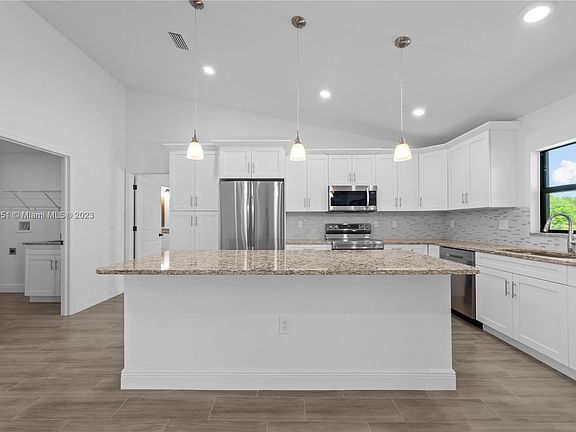 Under construction, camera's onsite. Currently @ drywall. Country living at it's best! Horse Friendly! NO HOA! 4 BR,3 BA, PLUS den on nearly 1.25 acres corner lot. 2 Master Suites, granite countertops, center island, SS appliance package. Main Master suite has coffered ceiling, walk-in closet, his & her sinks, tiled shower. oversized screened lanai.Room for pool. Easy access to SR80 & 82,Seminole Casino, SWFL airport, Ft. Myers, & Cape Coral. Fast growing area. Homes are selling fast.**Completed photos are for a previously sold home. Solely for the purpose of viewing similar upgrades, may be reverse floorplan. not a depiction of this specific house. Photographs, colors, features, and sizes are for illustration purposes only.
