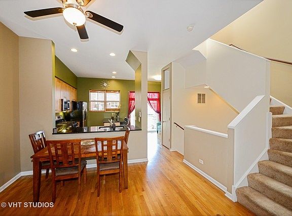 Spacious and bright, this Forest Park townhome offers an open floor plan, 10 ft ceilings, and a wood burning fireplace with a gas starter. The 1st floor family room has a built-in bookcase/entertainment center with library ladder and cable halogen lighting. This room can also be used as an office or bedroom. The kitchen offers maple cabinets and granite counter tops and a bonus area. Additional features included hardwood floors and a skylight. The private balcony for is perfect for relaxing and grilling. Park in the 2 car attached garage. Walk to Green Line, Metra, restaurants, shops and more in Forest Park, Oak Park and River Forest.