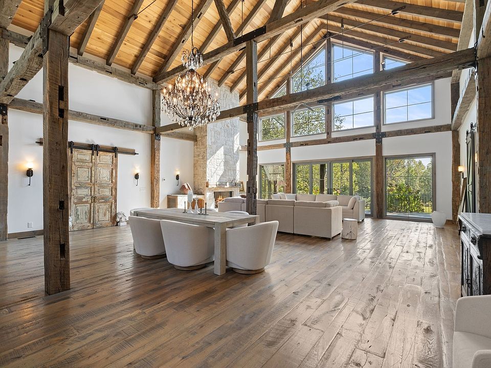 Captivating rustic retreat on 13.88 acres with two stunning homes (totaling 7975 SF) in the rolling hills of Tennessee. Upon entering the 5,371 SF primary residence, the ballroom inspired great room instantly takes your breath away with 28-foot ceilings, 150-year-old Montana timber beams, & abundant natural light that creates a space both grand & welcoming. The chef’s kitchen features Bertazzoni appliances & open counters designed for effortless cooking while family and friends gather nearby. The thoughtfully curated grand scullery adjacent to kitchen allows for larger-scale gatherings out on the terraces or in the great room. Terracotta stone and Restoration Hardware chandelier lighting throughout the home balances modern elegance with timeless beauty. Seventy-year-old haveli mansion Indian teak doors open into the main floor primary suite with a spa bath designed for relaxation. An additional first floor bedroom with full bath offers added space and flexibility, currently being used as a private office. The French Quarter floating staircase leads to three spacious bedrooms, including a secondary primary suite. The expansive studio on the second floor with its own full bathroom directly across, is flooded with natural light & can be used also as an additional bedroom, a home office, lounge or creative retreat space. Expansive 1,500 SF porches & terraces with a swim spa provide a perfect place to relax outdoors surrounded by nature or under the stars. Across from the primary residence, a charming 2604 SF second home with 3-bedroom, 2.5-bath is nestled on 6.88 acres. It features an expansive sunroom for morning coffee, a commercial-grade kitchen with Wolf appliances, downstairs primary & a peaceful backyard retreat with views of sweeping meadows-protected by The Tennessee Land Trust ensuring permanent privacy & quietude. Together, these homes create a private sanctuary where every space blends warmth, light & thoughtful design to embrace the beauty of country living.