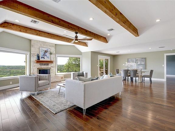 Million Dollar Panoramic Views overlooking Lost Creek golf course, gated community in Foothills of Barton Creek, culdesac rare limestone one-story with open floorplan, standing seam metal roof (2013) soft contemporary with hardwood flooring, wood beam ceiling, walls of windows. thoughtful storage everywhere, Separate guest room with full bath could be office or guest suite with private entry. Could be a great lock n leave property. Low maintenance yard.Guest Accommodations: Yes Restrictions: Yes Sprinkler Sys:Yes