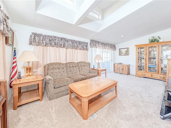 Welcome to Gates of Spain, a vibrant community designed for those aged 55 and over, where beauty and serenity thrive. This immaculate, end unit, true triple-wide residence radiates light. Featuring an inviting living room with a custom fireplace that draws you in. The kitchen inspires culinary creativity, with abundant storage and a spacious island perfect for gatherings. Custom skylights illuminate the home, enhancing its cheerful atmosphere. The primary bedroom offers an expansive walk-in closet and a luxurious bath with a soothing soaking tub and dual vanities. Dual paned windows and stylish shutters adorn the residence. The property includes a convenient covered double carport and a delightful, fenced patio area, ideal for relaxation. With two Tuff sheds for ample outdoor storage. Enjoy breathtaking mountain views that uplift your spirit every day! Relax in the sparkling swimming pool, or the rejuvenating steam room or sauna, and forge meaningful connections at the clubhouse. This community is your gateway to nearby parks, shopping, dining, and entertainment, offering a lifestyle filled with personal discovery. Embrace the warm California sunshine as you explore the stunning surroundings, with Joshua Tree National Park just 18 miles away, 29 Palms Marine Corps Base 23 miles away, and Palm Springs only 30 miles away.