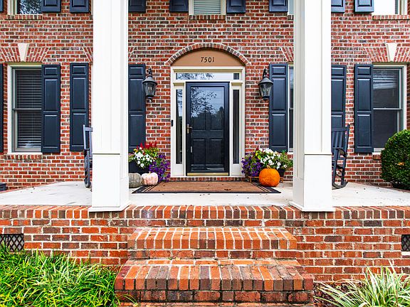 Welcome to 7501 Panther Branch Drive, a stately brick-front home with unmatched curb appeal, nestled on a quiet wooded corner lot in Northwest Raleigh just steps from Umstead Park. This 4-bedroom, 2.5-bath residence has been beautifully refreshed with fresh interior paint, refinished hardwood floors, and brand-new carpet, creating an inviting and move-in-ready feel. The timeless layout offers both elegance and comfort with a formal dining room for gatherings, a private office for work or study, and a cozy family room with fireplace that serves as the heart of the home. Just beyond, the stunning **all-season room** fills with natural light and provides the perfect spot to enjoy morning coffee, unwind with a book, or soak in peaceful views of the trees year-round. Upstairs, the spacious bedrooms and flexible bonus room allow room to grow and adapt to your lifestyle. Set on nearly half an acre, this property feels private and serene while still offering unmatched convenience to top-rated Leesville schools, shopping, dining, and major highways. With its stately presence, thoughtful updates, and warm character, this home truly offers the perfect blend of comfort, charm, and everyday livability.