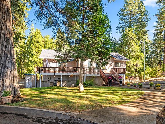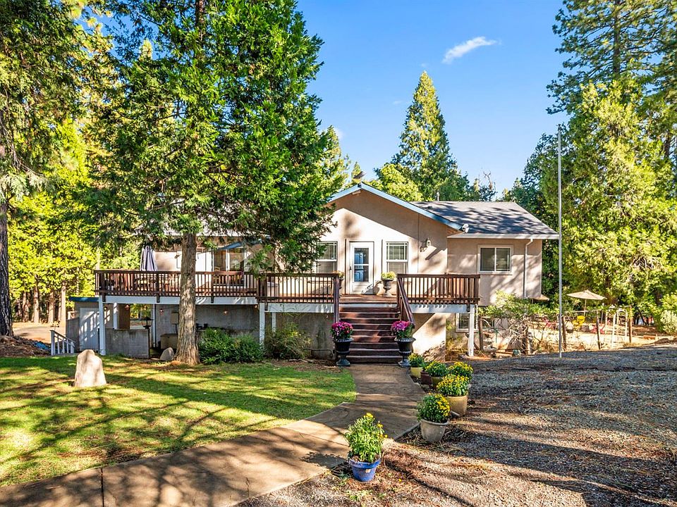 Welcome to your private foothill retreat in Somerset, where star-filled skies and wooded acreage create the perfect escape after a scenic drive through vineyards and fall colors. Nestled on 5 acres, this charmer offers serene views and a peaceful lifestyle as well as functionality! Inside, natural light pours through large windows onto rich hardwood floors. The kitchen blends warmth and function with custom maple cabinetry, Zodiaq Quarts Crystal black countertops, stainless steel appliances, and a center island with a prep sink, ideal for functionality and gathering. The dining area opens to a deck perfect for morning coffee or dinner under the stars. With three bedrooms, two baths, and an office nook all upstairs, the layout offers flexibility for family or guests. The lower level adds a full office (often used as a guest suite), full bath, laundry room, and game room with access to the oversized garage and additional indoor space ideal for in-home gym or drop shipping storage. Enjoy functional upgrades such as: owned 500 gal propane tank, Generac Generator, 220V air compressor/EV tools, RV Electrical hookup, HVAC replaced in 2023 and more! Just 15 minutes to groceries, 90 minutes to Lake Tahoe and 30 minutes to Apple Hill, your peaceful retreat awaits you