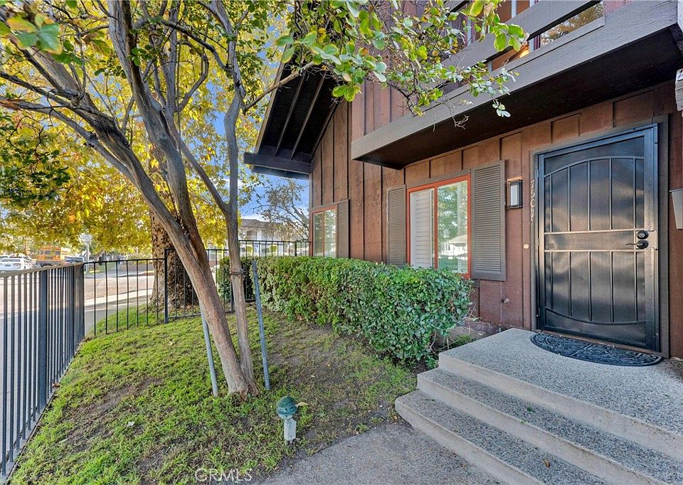 This beautifully maintained 2 bed, 2 ½ bath, nearly 1600 sq ft end-unit townhome blends space, comfort, and timeless appeal within a secure gated community, part of the sought after Franciscan complex at the center of Winnetka. Filled with natural light and pride of ownership, the home features a bright, open floor plan with smooth ceilings, plantation shutters, dual pane windows, and durable, luxury vinyl flooring throughout. The inviting living room opens to a large dining area, versatile enough to serve as an informal living space with sliding glass door out to the back patio. The remodeled kitchen forms the heart of the home, perfect for entertaining or enjoying preparing meals, offering granite counters, light cabinetry with stylish glass fronts, stainless steel appliances, and recessed lighting set in a tray ceiling. An updated ½ bath on the first level is convenient for guests. Up the stairs, brightened by a large skylight, are two en-suite bedrooms. The spacious primary suite features dual closets, a ceiling fan, and a sliding glass door to a private balcony, with a beautifully redone bath offering a dual sink vanity and a large walk-in shower with tile enclosure and built-in seat. The secondary suite includes plantation shutters, dual closets, and its own remodeled ¾ bath with dual sinks. Additional features include an updated electrical panel, and newer HVAC system ensure modern comfort and reliability. Out back is a private covered patio bordered by brick planters and a wood fence, perfect for relaxing or entertaining. Beyond is the detached two-car garage with laundry hookups and access from the private drive behind. Part of the Franciscan III community, the home has access to the community grounds, pool, and spa. Move-in ready yet offering the opportunity to personalize over time, this bright and well-cared-for home captures the best of comfort and practicality in a desirable Winnetka location near shopping, parks, and major commuter routes. Don’t miss out on this one!