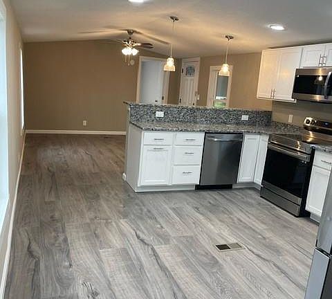 PRICE REDUCED! Ask about Our Special Financing Options! 0% Interest. Refurbished 3 bedroom 1 bath Singlewide Mobile home in Beautiful Biscayne Bay Community. This home features a BRAND NEW Kitchen with granite countertops. New stainless steal appliances including a new washer and dryer. New bathroom vanity, tub and new hardware. Hardwood flooring in living area, hallway, bathroom and laundry area. Premium carpet in all bedrooms. All new lighting with pendant lights and can lighting in kitchen. Ceiling fans in living room and bedrooms. Nice 4 season enclosed room off of the home for entertaining. Home wont last, call today to make an appointment.