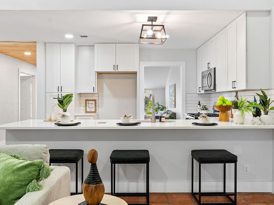 Exquisite, fully renovated single-story home nestled in the heart of Coronado Hills. This stunning reimagined home showcases modern elegance while preserving its timeless charm. As you enter, you’re welcomed by a formal living room under vaulted ceilings, creating an inviting sense of openness. It seamlessly transitions to an elevated dining area that’s perfect for hosting family meals and holiday gatherings. Beyond the dining room you’ll find a gourmet kitchen, featuring pristine white cabinetry, radiant quartz counters, SS appliances, and upgraded lighting. An expansive breakfast bar stands as the centerpiece, inviting casual meals and connection with guests as it flows into the family room. Despite its modern upgrades, the home's original charm is beautifully showcased in the classic brick fireplace, featuring a raised hearth and custom wood mantel. Flanking the fireplace, sliding doors lead to a spacious patio enclosure, an ideal spot for entertaining or relaxation, overlooking the expansive backyard with plenty of space for a pool addition! The primary suite features a wood-paneled ceiling, recessed lighting, large windows that welcome natural light, and an ensuite bath with two vanities and an oversized walk-in shower. Each secondary bedroom offers ample space, accompanied by a well-appointed second full bath. Offering exceptional convenience, this home is located at the epicenter of HWY 290, I-35, and US-183—facilitating effortless commutes in any direction. Enjoy quick access to the lively Mueller district, many retail options including Target and HEB, a diverse selection of dining and entertainment, and a short drive to the vibrant downtown Austin scene! Moreover, the residence is conveniently located just 2-6 minutes from Andrews Elementary, Webb Middle School, and Northeast Early College HS. This exquisite residence awaits its next fortunate owner with a fresh, modern elegance, timeless charm, and unparalleled accessibility – schedule a showing today!