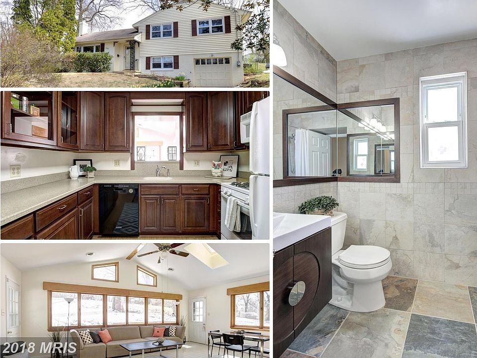 Spacious cul-de-sac split level with loads of updates! Solid wood floors extend thru open liv-din. GORGEOUS updated kitch w/hard surface CTOPS, tall cherry glass front cabs, pass thru to fam rm & loads of storage. Fam rm with WOW factor- tall windows, skylights and 2 sep exits to BY. New hardscaping & refin patio. 2017 furance, AC & HWH.