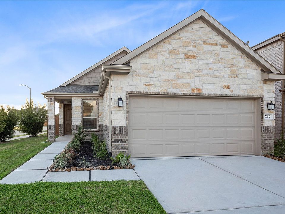 KB HOME NEW CONSTRUCTION - Welcome home to 7503 Sunlit Harbor Drive located in Marvida and zoned to Cypress-Fairbanks ISD! This stunning 3-sided brick w/stone veneer home features 3 bedrooms, 2 full baths, and an attached 2-car garage. Additional features include stainless steel Whirlpool appliances including microwave, 42" Woodmont Dakota Shaker cabinets in the kitchen, Silestone kitchen countertops, added breakfast bar to kitchen countertop, vanity with two sinks in primary bathroom, vanity, Den with a walk in closet, 2" faux wood blinds, 8' entry door with SmartKey/SmartCode Entry Door Hardware, black exterior coach lights, front gutters, and an extended rear patio slab. This beautiful home will be sold with ALL FURNITURE! You don't want to miss all this gorgeous home has to offer! Call to schedule your showing today!