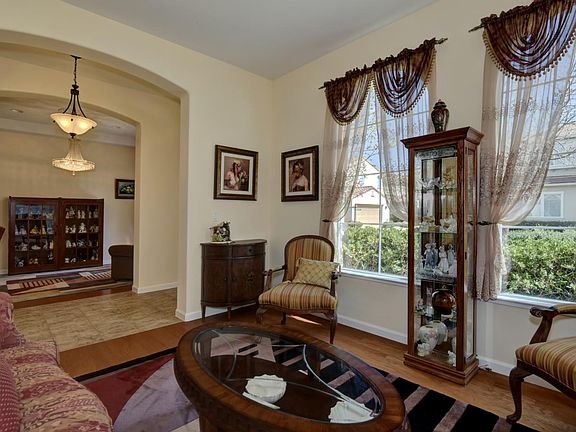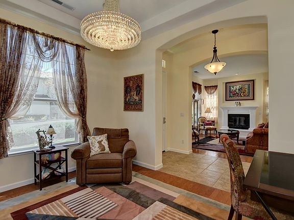 Sought after Wilshire model courtyard home at Eagle Ridge. Situated on a large corner lot with mountain views. Separate formal living room with gas fireplace and dining room with convenient butler's pantry. Sunny kitchen with granite counters, eating bar, custom pendant lighting, ample cabinetry and breakfast nook. Family room adjacent to kitchen lends to great entertaining space. Master suite designed for ultimate privacy. Master bath offers generous walk-in closet, separate shower and oval soaking tub. Other amenities include hardwood floors, central AC, 2nd floor laundry room and ceiling fans. Lush rear patio with custom arbors and fountain set up for relaxing and hosting friends and family.