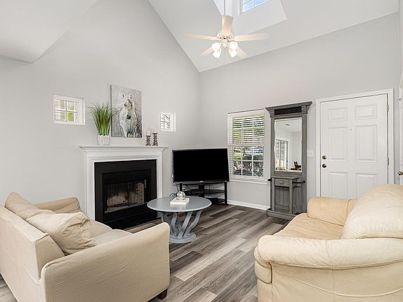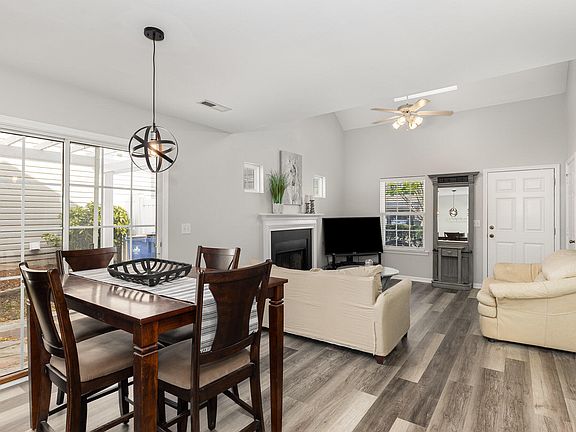 Welcome to your ideal home conveniently located near 540 and experience all the Triangle has to offer! This charming 3-bedroom, 2.5-bathroom residence with a one-car garage boasts an inviting open floor plan and a prime location. Inside, you'll find it has been tastefully painted and updated with new flooring! There are two primary bedrooms, one on each floor, offering versatility and convenience. The open family room features a vaulted ceiling and a cozy fireplace, creating a comfortable retreat for everyday living. The kitchen is a must-see, with freshly painted cabinets and ample space for culinary adventures. Step outside to the relaxing arbor area and beautiful stone patio, perfect for enjoying outdoor living and quiet moments of serenity. The fenced-in yard provides privacy and security. Plus, enjoy peace of mind with a new roof installed in 2021, ensuring years of worry-free living. Conveniently walk to nearby shopping and dining options, making everyday errands a breeze. Don't miss out on this fantastic opportunity to call this wonderful home yours!