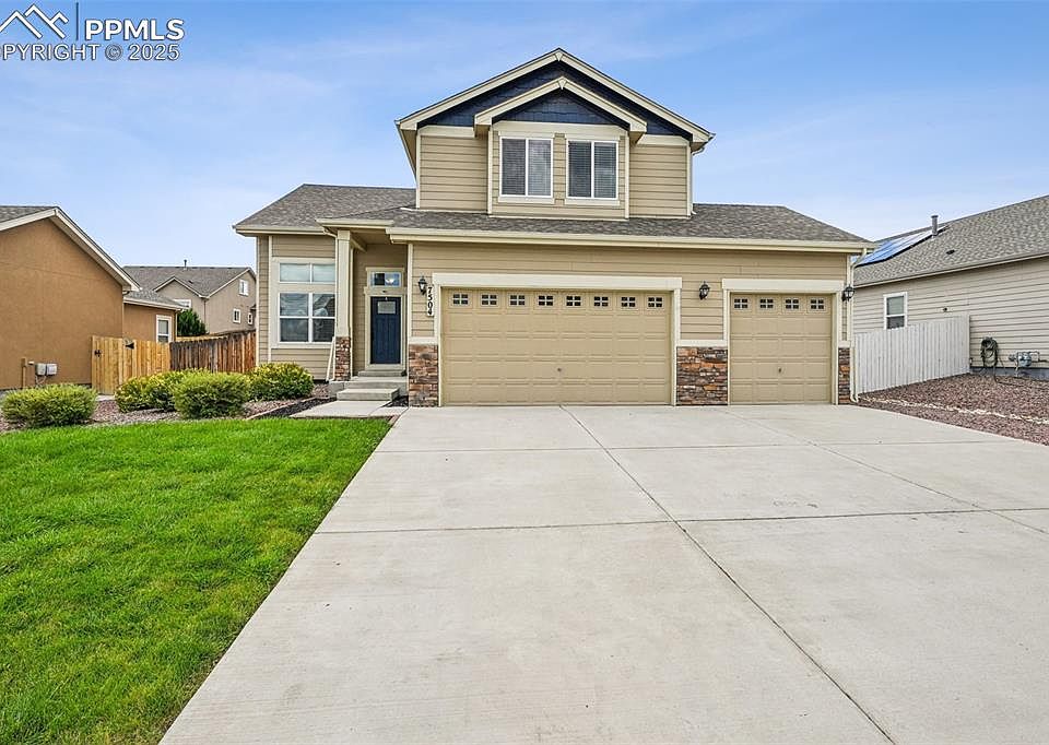 Spacious 3 bedroom, 4 bath residence is situated in the desirable community of The Glen at Widefield. The open-concept floor plan is thoughtfully designed to create spacious living and entertaining areas filled with natural light and is enhanced by soaring ceilings. The kitchen is equipped with granite countertops, a pantry, stainless steel appliances, and a large island, offering both style and functionality. The main level also includes a convenient half bathroom and laundry room located right off the garage. Upstairs, an open loft or office space overlooks the main living area, while the primary suite offers a generous walk-in closet and a private bathroom complete with a soaking tub and separate stand-up shower. Two additional bedrooms and a full bathroom are also located on this level. The fully finished basement provides an ideal setting for movie nights and gatherings, featuring a wet bar and an additional full bathroom. Outdoor amenities include a spacious, fully fenced backyard that is perfect for recreation or relaxation. All of this and more with a close proximity to shopping, dining, Shriever AFB, Peterson AFB, and Fort Carson.