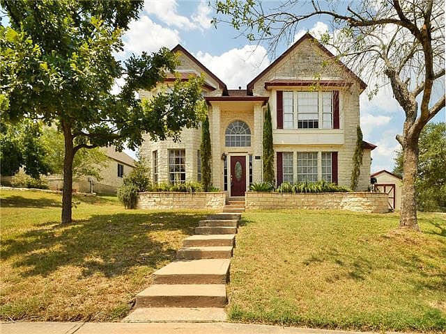Fantastic location--and Austin views! Beautiful Texas limestone home on spacious lot with large trees. Light and bright open floor plan with 3 living areas! Fantastic game room with scored concrete floors and custom-made mahogany bar. Neutral paint colors, warm wood laminate floors, gleaming tile, and updated lighting throughout. Relax out on the deck with custom pergola in the backyard adjacent to greenbelt and trails! Tons of room for storage with a 2-car garage and shed. Easy to show and great value!
