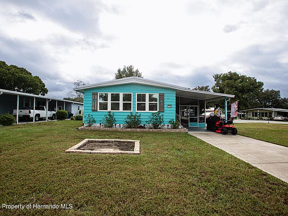 Sellers are providing a 1-year transferrable Home Warranty. Freshly installed ceiling fans, light fixtures and recently cleaned air vents for optimal indoor air quality. Roof has recently been pressure washed and sealed AND the AC in this home is less than a year old. Move right in without a worry to this gem in Brookridge 55+ Community, Brooksville, Florida. Delight in the comforts of this beautifully renovated 2-bedroom, 2-bath manufactured home, nestled on a corner lot in the gated community of Brookridge. Boasting 1,416 sq.ft. of living space, this home is spacious and perfect for those seeking a blend of style and convenience. Every inch of this home reflects careful attention to detail: Newly painted interior and exterior for a fun, yet modern look. A fully upgraded kitchen featuring granite countertops, ample storage space and new stainless steel appliances. Admire the durability of the new laminate vinyl plank flooring that graces every room. Benefit from brand-new impact glass windows, new doors and a metal roof, ensuring you several years of use and peace of mind during every season. The expansive living room is highlighted by a generous bank of windows, creating a warm, inviting space for relaxation or entertaining. This home is ready and waiting for you to bring your furnishings and personal touch. Embrace the lifestyle of Brookridge - a community that offers safety, camaraderie and amenities tailored to those 55 and over. This is not just a house - it's the key to your dream retirement. Don't miss out on this opportunity! Schedule your showing today.