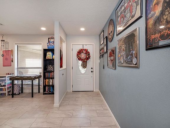 This beautifully updated 3-bedroom, 1¾-bath home offers style, comfort, and functionality. Just off the front entry, a flexible space provides the perfect setting for a home office, study, or second living area. Ceramic tile flooring runs throughout the main living spaces, with cozy carpeted bedrooms for added comfort. Enjoy open-concept living highlighted by a striking focal wall featuring a gas log fireplace and built-in shelving. The oversized kitchen island is a chef's dream, boasting a farmhouse sink, beverage chiller, and hidden spice racks—perfect for entertaining. A sliding barn door with opaque glass conceals the utility room, which conveniently connects to the attached two-car garage. The spacious primary suite features a walk-in closet and a stylishly updated ¾ bath. Two additional guest bedrooms offer generous closet space and share a full hall bath with contemporary finishes. Curb appeal abounds with a welcoming covered front porch and a wood privacy fence enclosing the backyard—ideal for relaxing or entertaining outdoors. Call listing agent Rachael Jones for your personal tour - 816.838-7687.