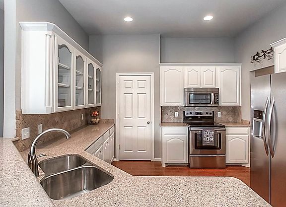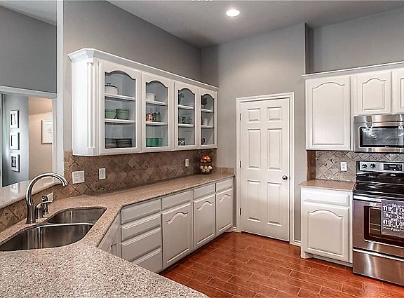 Huge Price Improvement! Located in the quiet golf course community of Whitestone Ranch in Benbrook, this charming home offers a great floor plan with split bedrooms (two of which have attached bathrooms), high ceilings, and great natural light. The kitchen is huge for a home this size and is open to the living area and breakfast area. It features granite counters, stainless appliances, and glass-front cabinets. The focal point of the living room is the wood-burning fireplace - the perfect spot to get cozy in cooler months! Great sized yard - and beautifully landscaped. The home is immaculate and has been impeccably maintained with great updates over the last 2 years. Walking distance to Westpark Elementary!
