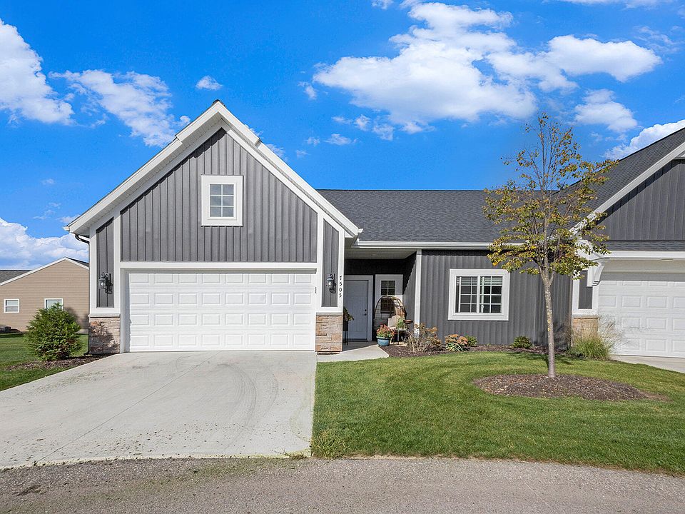 The private master suite includes a walk-in closet and full bath, while the second bedroom and bath provide flexibility for guests or a home office. Enjoy year-round relaxation in the four-season room, which leads out to a peaceful back patio—perfect for morning coffee or evening unwinding. Built as a zero-step ranch, this home is designed with accessibility in mind. Low-maintenance living in a desirable Caledonia community makes this the perfect place to call home.