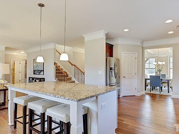 Beautiful 4 bed 4 full bath single family home located in Bryson village, Raleigh. Bedroom with full bath downstairs, mud room, hardwood floors throughout open floor plan. The kitchen with ample cabinets and granite countertops and an island open to the living room boasting a fireplace. Second floor features 2 large bedrooms connected by a Jack& Jill bathroom, also an open big recreation room with a 2nd floor hall bath, 2nd floor landing and laundry room, also the master bedroom with it's comfortable layout provides a large walk in closet & a very nice master bath with enclosed water closet. The backyard includes covered patio. The neighborhood hosts a swimming pool for laps and a playground. Near I-540 for easy commuting. Available from March 1st. Small dogs w/ pet fee.