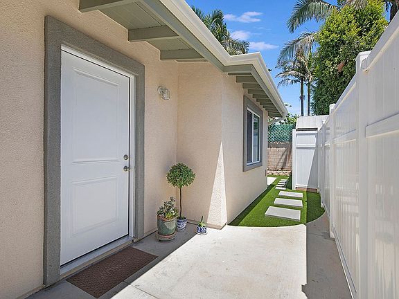 650 sq ft 1 BR 1 BA house built in 2021 featuring high ceilings, waterproof vinyl flooring throughout, an expansive Great Room with recessed lighting, a ceiling fan, and sliding glass doors leading to a very private backyard with a Pergola. There are 2 houses on the property, and this is the back house. Both houses are very private. The unit comes with a Ring Video Doorbell system. The Great Room accommodates a living and a kitchen area with a free-standing gas stove, a 5 ft quartz breakfast island, and abundant cabinets. An enclosed laundry area with new full-sized washer and dryer and a built-in storage area with a rolling shelf unit are next to the kitchen. The spacious master bedroom has a ceiling fan and recessed lighting and walk-in closet with a skylight. The bathroom features a roomy porcelain tiled shower, skylight, and Carrara marble floor. Other house features include double-paned windows, a 2-1/2 ton HVAC unit, and a tankless water heater. The patio opens to a pergola and a small area with a sprinkler system for planting herbs and vegetables. A free parking space for one car comes with the lease and is accessible on the left side in the front of the property. The property has great friendly neighbors, close to markets and CSUN. If interested, please provide the Zillow Profile info (income, FICO score, # of household members) when requesting a tour. Tenant pays for all utilities except water and gardening service. No smoking in the house.