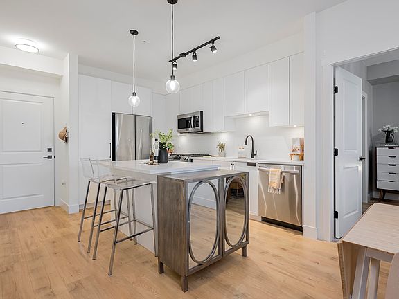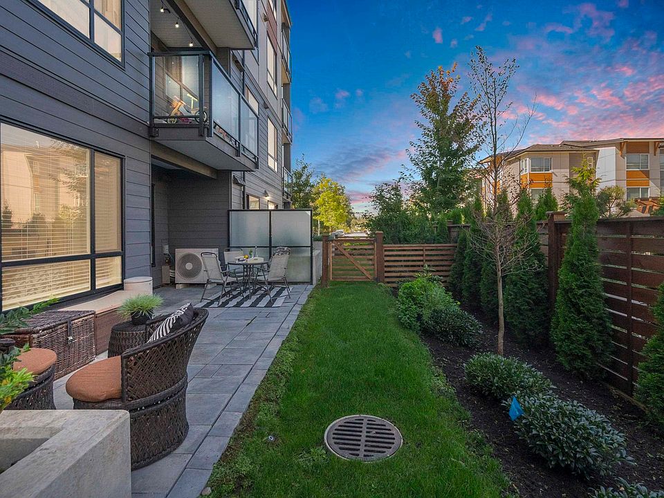 Welcome to Camden by award-winning Zenterra Developments! This spacious 2 bed + large flex, 2 bath condo offers the perfect blend of indoor comfort & outdoor living. Rarely available, enjoy a MASSIVE walk-out patio & fully fenced yard—ideal for morning coffee, entertaining, or kids & pets to play. The large flex room easily works as a 3rd bedroom or home office. Thoughtfully upgraded with $15K spent on A/C in both bedrooms & the main living area, plus durable laminate flooring throughout—NO carpet! The modern kitchen features quartz counters, a large island, and Samsung S/S appliances. Prime Willoughby location just steps to shops, schools, Langley Events Centre, Carvolth Exchange & the future SkyTrain. Comes with 1 parking & 2 storage. GST already paid!