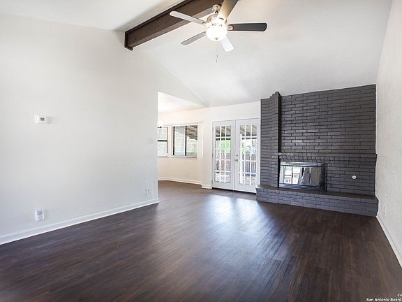 This turnkey home is nestled in the Ventura subdivision in San Antonio, Texas on quiet cul-de-sac. The neighborhood is centrally located and offers quick commutes to shopping, hospitals, Randolph AFB, entertainment and highways I35 and 1604 as well as Wurzbach Parkway. The exterior has been updated, and the colors are vibrant and crisp. The composition roof was fully replaced in October 2025. The living room and primary bedroom both have vaulted ceilings with contrasting wooden beams. The updated vinyl flooring is perfect for entertaining guests and pet traffic. The two secondary bedrooms are split from the primary bedroom. The backyard is sizable and has a covered concrete patio. You just need to add oversized, cozy chairs, a firepit and twinkle lights to host parties! Schedule your tour today!