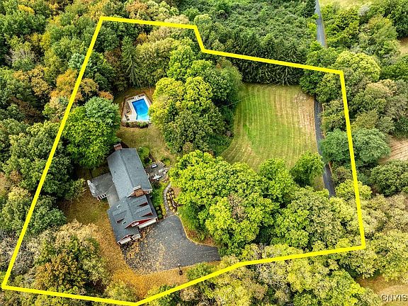 This stunning 5-bedroom, 3.5-bath Colonial home blends timeless charm with modern comfort in a serene, wooded setting. The beautifully landscaped exterior features classic brickwork accented by red siding, a curved walkway, and a spacious patio perfect for outdoor entertaining. Inside, the home offers a warm and inviting atmosphere, beginning with an updated rustic kitchen that boasts exposed wood beams, granite countertops, rich cabinetry, and updated appliances. Two distinct living areas provide both comfort and character—one featuring a dramatic stone fireplace with wood-beamed ceilings, the other offering a more traditional setting with a decorative fireplace, and ample natural light.