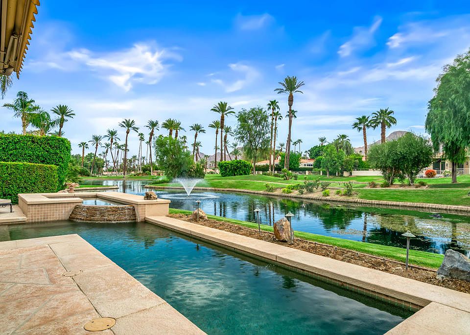 Stunning south facing Spyglass floor plan overlooking private pool & spa, lagoon with fountain & waterfall onto the Santa Rosa mountains. Offering three bedroom ensuites and a powder room. The open floor plan is sought after for entertaining or private enjoyment.