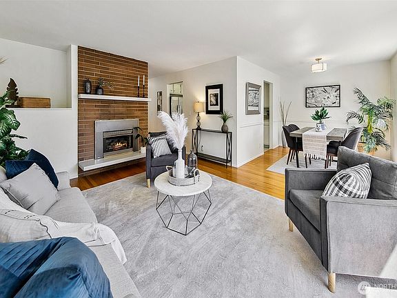 Sun-filled Mid-Century gem in Loyal Heights with plenty of parking! Nestled on a quiet, local-traffic-only street, this beautifully maintained home features a bright living room with gas fireplace and a formal dining area ideal for entertaining. The updated kitchen boasts granite counters, new flooring, and an eating nook. Three generous main-floor bedrooms include a Primary Suite with double closets and ¾ bath. The sunny lower level offers high ceilings, a spacious family room with gas fireplace, ½ bath, and flexible space for an office or 4th bedroom (non-conforming). Enjoy gas heat, A/C, oversized 2-car garage, and RV parking. Close to dining and shops with an easy commute to Downtown!