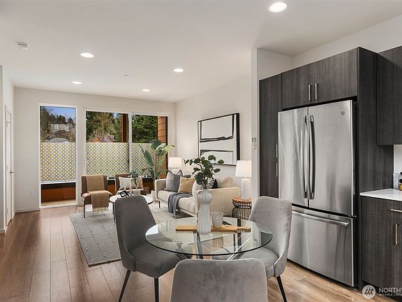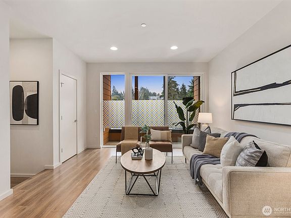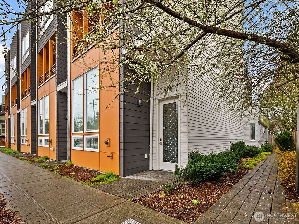 Lovely Ravenna end-unit townhouse, across from a park and just a short bus or bike ride to the Univ. of Washington! The Burke-Gilman Trail is nearby! Walk on wide sidewalks to grocery stores and elementary schools! This flexible home offers three bedrooms, with two on the main floor, and a spacious primary suite up top with a walk-in closet and luxurious bath with walk-in shower. The lower level features a no-step entry with an accessible bathroom and shower, ideal for guests or multi-generational living. A unique live/work opportunity, this home boasts high street visibility, and a private rear entry for convenience. Enjoy breathtaking views from the rooftop deck, plus the ease of an off-street premium parking spot.