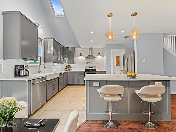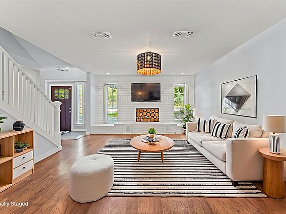 Where Style Meets Serenity in Magnolia: This beautifully updated home blends charm, comfort, and functionality in a peaceful, tree-lined neighborhood. Step inside to a bright, open layout and a magazine-worthy kitchen with quartz counters, stainless steel appliances (all included!), farmhouse sink, pot filler, and a large island for entertaining. The primary suite is a true retreat with a walk-in closet and sliding barn door. Across the living area, a second bedroom with its own full bath adds flexibility—perfect for guests, a home office, or creative space. Upstairs offers two more spacious bedrooms and another full bath. Enjoy multiple patios, a cozy fire pit, custom outdoor bar, greenhouse, and an oversized plumbed garage—ready to become your dream workshop. Recent updates in the past five years: roof, partial fencing, outdoor A/C unit, and hot water heater—providing peace of mind and move-in-ready comfort. This one checks every box—and then some. Come fall in love!