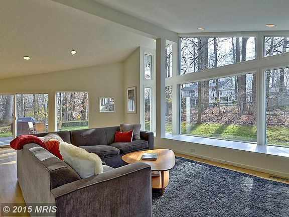 Mid Century Modern jewel on Bethesda cul de sac. Expanded by over 700 sq. ft. this Overlook model includes large master bath, powder room, bump out kitchen and and pantry. Spectacular great room addition with breathtaking vaulted ceilings and wall of windows overlooks landscaped yard. 4 bedrooms, 3.5 baths, hardwood floors, new tiled foyer, new roof and 1 car garage. Open Sunday 1-4.