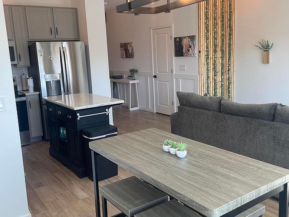 Step inside to find custom accent walls in every room, modern light fixtures, smart home thermostats, and pre-wired internet in place. The open layout showcases a bright kitchen with shaker cabinets, an island (included at asking price), floating shelves, and designer lighting. The dining room, living room, loft, and bedrooms all feature unique accent walls, custom finishes, ceiling fans, and blackout curtains in select rooms. The garage is finished with an epoxy floor, custom paint, upgraded lighting, overhead storage, and a workbench with storage cabinet that can be included. Outdoors, enjoy mountain views from the expanded concrete patio with space for grilling and entertaining. Patio furniture, grill, and string lights included!