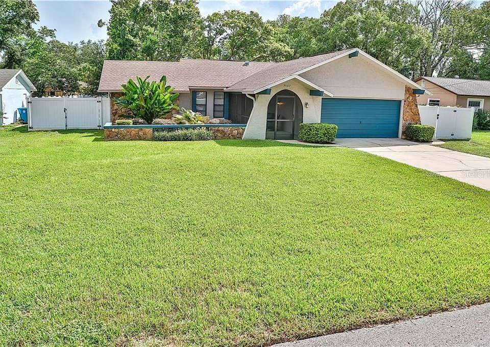 COMPLETELY REMODELED and MOVE-IN READY!! PICTURE PERFECT and meticulously maintained 2 bedroom, 2 bathroom, 2 car garage home with a beautifully landscaped yard. Completely fenced 1/4 acre with vinyl privacy fence!! Large front lanai and entry way! Light and bright - spacious, open floor plan with high ceilings!! Kitchen is remodeled with gorgeous cabinets, countertops, modern light fixtures and a large island/breakfast bar open to the great room and dining room...and overlooking the private backyard and. NO POPCORN CEILINGS!!! New laminate wood floors throughout the main areas of the home! Ceramic plank tiles in the bathrooms. Split floor plan gives privacy to the master side of the home! Large windows let lots of natural light into the home. Master bathroom has a walk-in shower with subway tiles and tiled seat. Second bathroom is attached to the second bedroom for privacy or use as a second master bedroom, but also has access from the living room/hallway to use as a guest bathroom. Enjoy relaxing or entertaining on your large screened in back lanai overlooking your private, picture-perfect backyard!! Newer stainless steel appliances included, as well as washer/dryer are included.No HOA! Fence has double gate to access backyard for parking your toys. Irrigation well with nice sod and landscaping. Nothing to do...just move-in and relax!!
