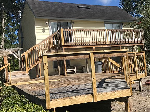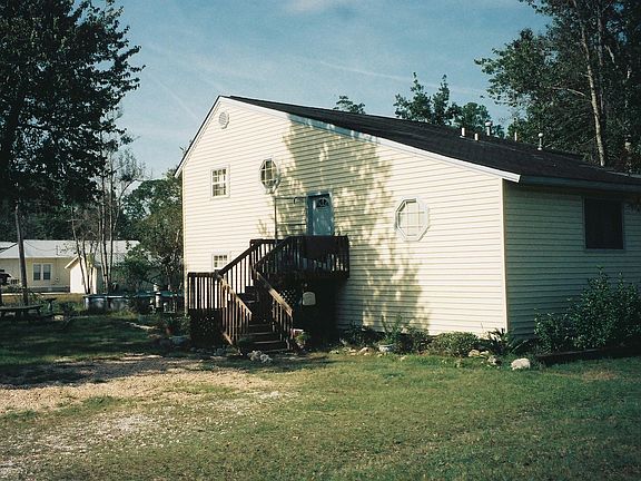 This unique tri-level home has NO HOA and sits DIRECTLY ACROSS FROM THE WATER. The quiet street also has a boat ramp less than half a mile away. If you are looking for 2+ acres with a storage structure to store your boat or RV, this is it! There are 2 sheds outside waiting for all your toys. When you walk up the adorable set of stairs into your front door, the master bedroom and bathroom will be to your right (wait till you see the large tile shower!). As you head up to the top level, you will walk into the living room, dining room, and kitchen. The views from the dining room and kitchen are off the beautifully kept landscaped yard. Off the dining room is the large 2 level wooden deck. You can enjoy sitting out and listening to natures music.