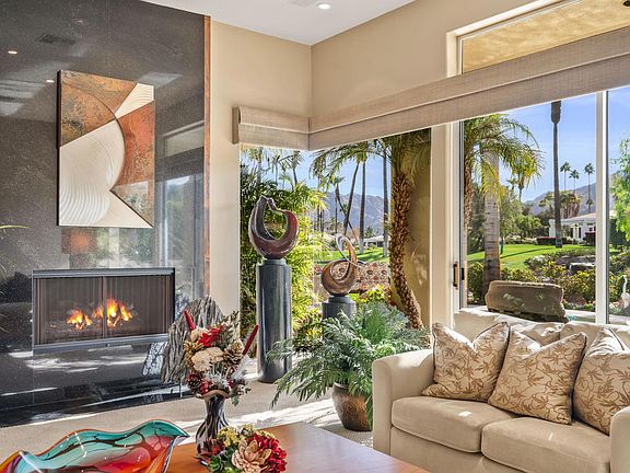 A beautiful home on a fabulous expansive south facing lot with endless views of the Santa Rosa Mountains, a lake, a waterfall and a private pool and spa. This rarely marketed Riviera floor plan offers 4 bedrooms (including a freestanding casita being used as an office) and 4.5 baths and 3 fireplaces. Enter the front courtyard through double, cut glass, doors and you are welcomed by a lovely water feature and a beautifully decorated home. The Riviera floor plan offers a formal living room, formal dining room, separate family room and an eat-in gourmet kitchen with island bar. This special home has upgraded finishes including granite counter tops, designer grade appliances, including an expanded primary bedroom suite closet to die for!. You will want to see this beautiful home in an outstanding Indian Wells location. Home is being offered partially furnished and some of the furnishings in the photos have been removed. Shown by appointment only.
