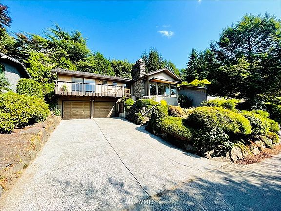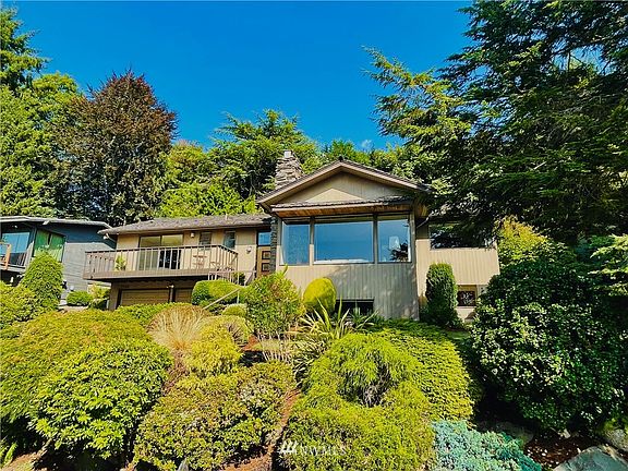 Take in the views of the Sound from the new front deck. Enjoy the serenity of the beautiful landscaped two tiered yard bordered by evergreens around the built in gas fireplace on the back patio. This unique home with a sunken great room and wet bar in the lower level and grand sunken living room with wood burning Columbia basalt fireplace in the upstairs makes this the perfect home for entertaining. Three large rooms upstairs with two bathrooms and large utility room/pantry off of the kitchen. This home has high ceilings and beautiful natural light all day long. This is a quiet and well maintained street/neighborhood. Easy access to Lincoln Park, Lowman Beach and Alki, 10 min to WS foot ferry.