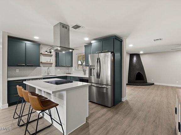 Stylish Retreat! This beautifully remodeled home tucked in a cul-de-sac, blends modern luxury & charm featuring an open floorplan centered around a kitchen with dark green cabinetry, center island & breakfast bar, quartz countertops & SS appliances. A spacious family room with a statement fireplace & backyard access allow for cozy gatherings or entertainment. Primary bedroom features an ensuite with a walk-in tile shower & updated vanity. Wood-like flooring runs throughout the home for a warm & timeless feel, plus indoor laundry & direct-access 1-car garage provide convenience. The large backyard with block fencing & covered patio offers endless potential! Just a short distance to Old Town Scottsdale & major highways plus upgrades, charm & unbeatable location, this home truly has it all!