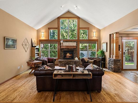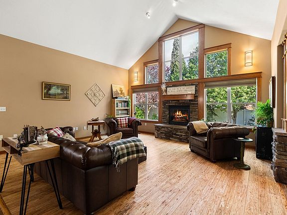 Stunning home in sought after Five Mile with beautiful finishes, spacious garage, bonus room & RV parking. Enjoy the grand covered porch entry leading inside to an open, airy layout with soaring ceilings, tile inlay, plank flooring, custom woodwork & cozy gas fireplace. The chef's kitchen is a culinary delight, boasting stainless steel appliances, granite countertops, & expansive breakfast island for entertaining. The primary suite offers a large serene retreat with natural light, private lanai, walk-in closet, dual sinks, soaking tub & spacious tile shower. The second main-floor bedroom includes walk-in closet which connects to stylish full bath. Entertainer's basement features a full-sized wet bar, 3 additional bedrooms, versatile nooks, storage room & additional den/work space. Outside, enjoy a professionally landscaped park-like backyard with a custom patio, privacy trees, plentiful RV parking on the side, 4 car tandem garage with finished bonus room above. Close to parks, shopping & restaurants.