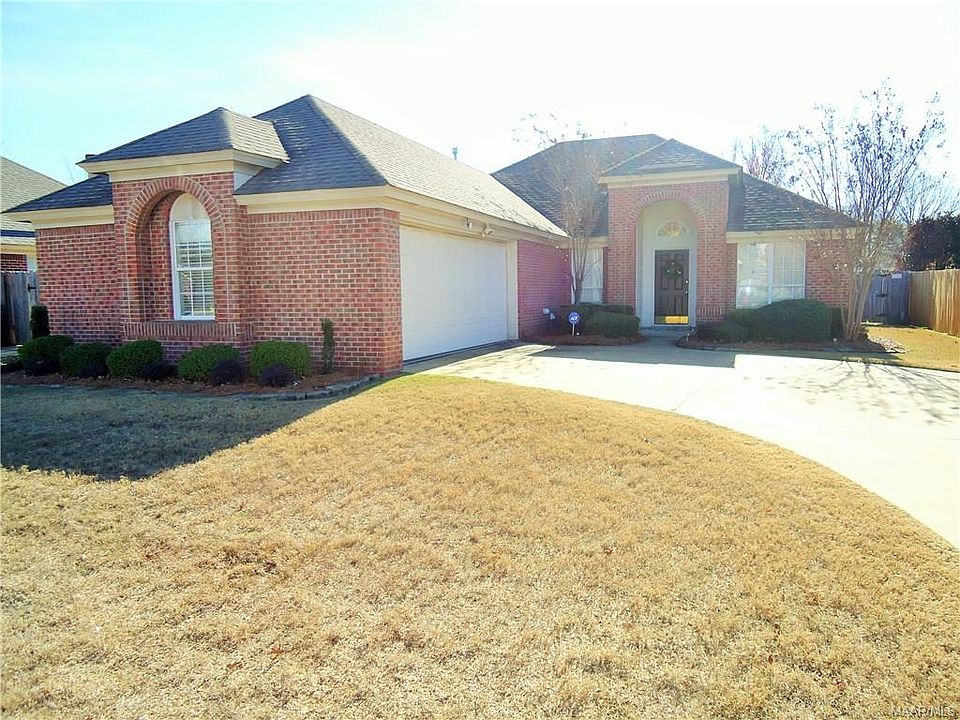 Bright open spaces and hardwood Laminate floors flow through the Dining, Greatroom, and hallway. High ceilings and crown molding add to the ambiance of this home. Kitchen has stainless appliances, pantry, beautiful countertops, stone backsplash, and a bar overlooking the greatroom room. Breakfast nook is all windows giving natural light and warmth. Greatroom is spacious with high ceilings, a fireplace, and built-in speakers. Main bedroom features a walk in closet, enough room to fit oversized furniture. The main bathroom offers a large double vanity with a dressing area, garden tub and separate shower. Two bedrooms on the opposite side and a guest bathroom. A fourth bedroom is off the foyer with double door entry. Outside relax on the patio overlooking the a plum tree! Privacy fence surrounds and gives privacy. Other features include 2 car garage and plenty of coat, linen and utility closets for storage. 1yr. AHS warranty.