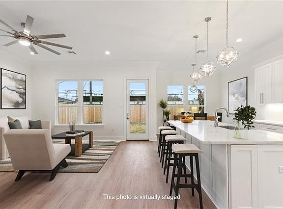 This 1 year old home has a carefully chosen open floor plan that feels much larger than it is and the 10 foot ceilings don't hurt. This home has many upgrades including 8 foot doors, high end Quartz countertops and oversized 6 foot windows that bring in wonderful natural light. The oversized garage allows for two full size cars, or use this as a bonus space for what ever you need. X flood zone. Owner agent. Tenant Occupied. Neighborhood playground!! Gas Range/Oven.